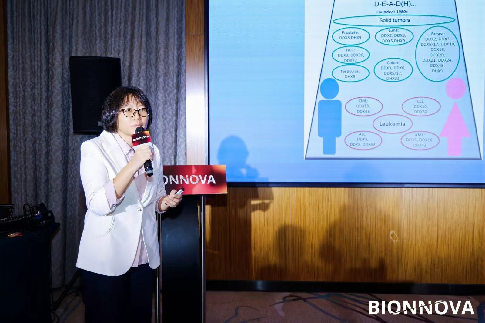 2025年12月9日-10日,第4届BIONNOVA华南创新论坛在广州隆重召开。此次BIONNOVA华南创新论坛汇集了跨国药企、多家国内领军的Biopharma和Biotech企业、科研院所与临床一线的重量级嘉宾,共同探讨生物制药前沿领域技术发展趋势。开悦生命研发负责人张严冬受邀出席,并在《小分子药物创新发现》的分论坛上做了题为《RNA解旋酶DHX33抑制剂在治疗晚期实体肿瘤中的应用研究》的主题演讲,分享公司在靶向RNA解旋酶领域的创新技术、药物发现和临床进展。RNA解旋酶靶向技术目前是当前肿瘤治疗中一个崭新的药物开发领域,虽然具有较大的研发风险,在开发过程中可能面临诸多技术挑战,但因为没有过多同质性竞争,因此具有较大的市场开发价值。张严冬在演讲中介绍了RNA解旋酶家族蛋白的特征,目前国际上正在开发的RNA解旋酶家族药物靶点种类,及其研发进度。在这一领域,开悦生命通过自主创新打造了差异化的解旋酶家族靶点技术。重点介绍了针对RNA解旋酶DHX33蛋白的靶点作用机理、其解旋酶活力小分子抑制剂的药物开发过程和目前的临床开发进度。首个靶向RNA解旋酶DHX33的分子在临床前研究中显示出良好的安全性与优异的成药性。同时,开发了针对RNA解旋酶靶点的伴随诊断技术。